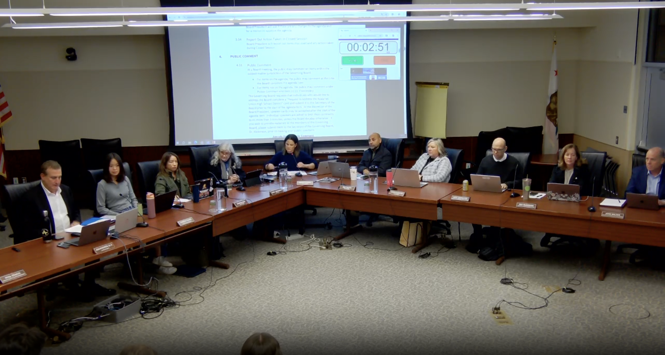 The district completed in-person PRISM trainings at all sites while developing staff guidance on the Mirabelli Supreme Court ruling, even as a Moms for Liberty representative criticized gender identity policies.
