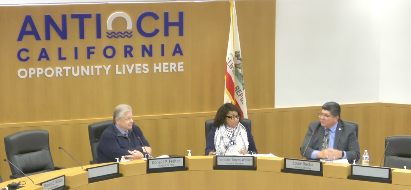 A three-member Antioch City Council — with Mayor Ron Bernal and Councilmember Monica Wilson absent — spent much of its Jan. 27 meeting absorbing a data-driven framework that concentrates most of the city's gun violence in a single corridor, then pivoted to an urgent scramble for cold-weather shelter after a hotel partner backed out of a warming center deal.