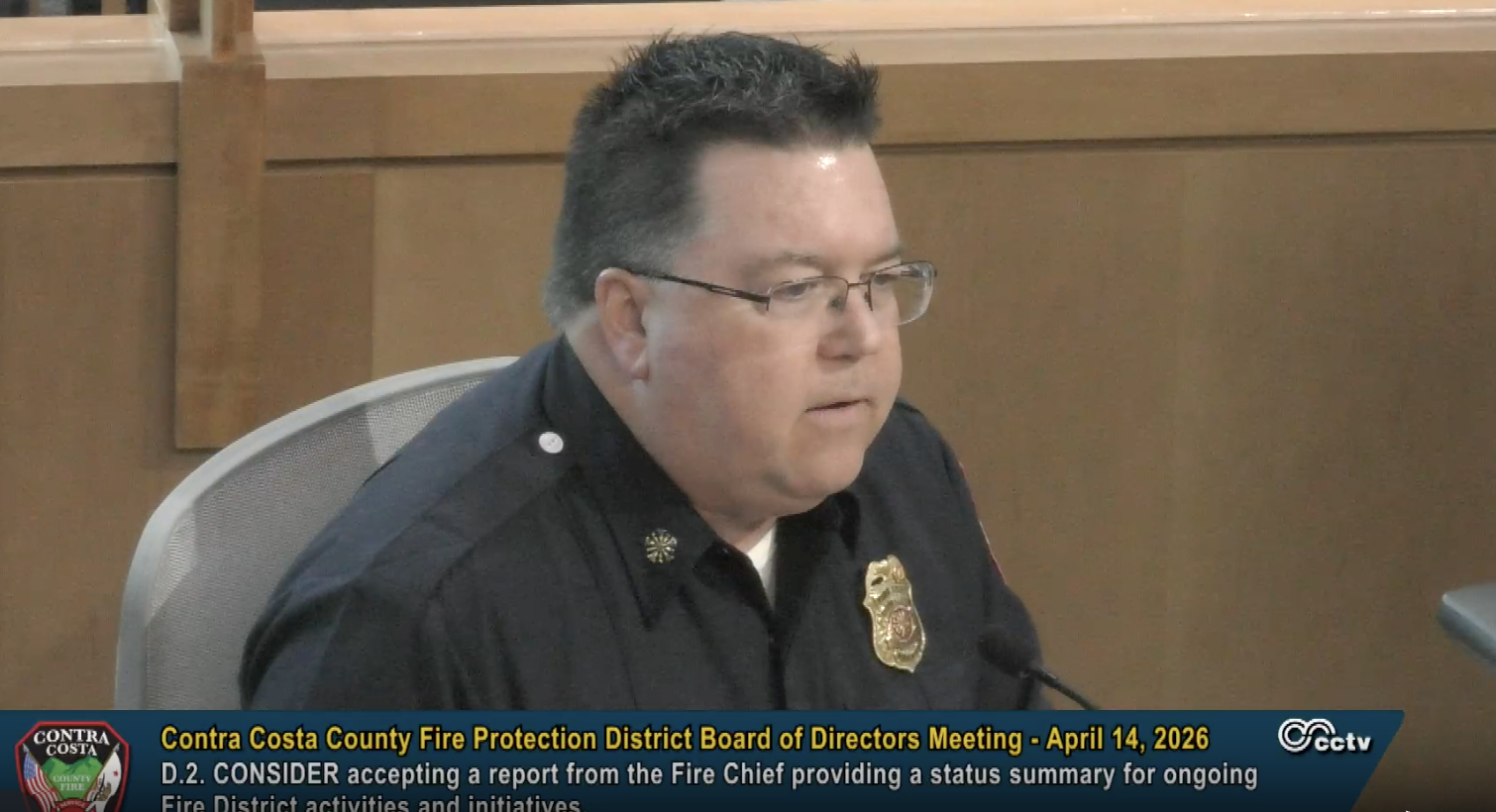 The Contra Costa County Fire Protection District board, held by the Board of Supervisors once per month, heard a sweeping status report from its interim fire chief that painted a picture of a department racing to stay ahead of an early wildfire season — while simultaneously investing in firefighter health, electric vehicle fire tools, and a modernized dispatch center. All actions passed unanimously with no public comment on any item.