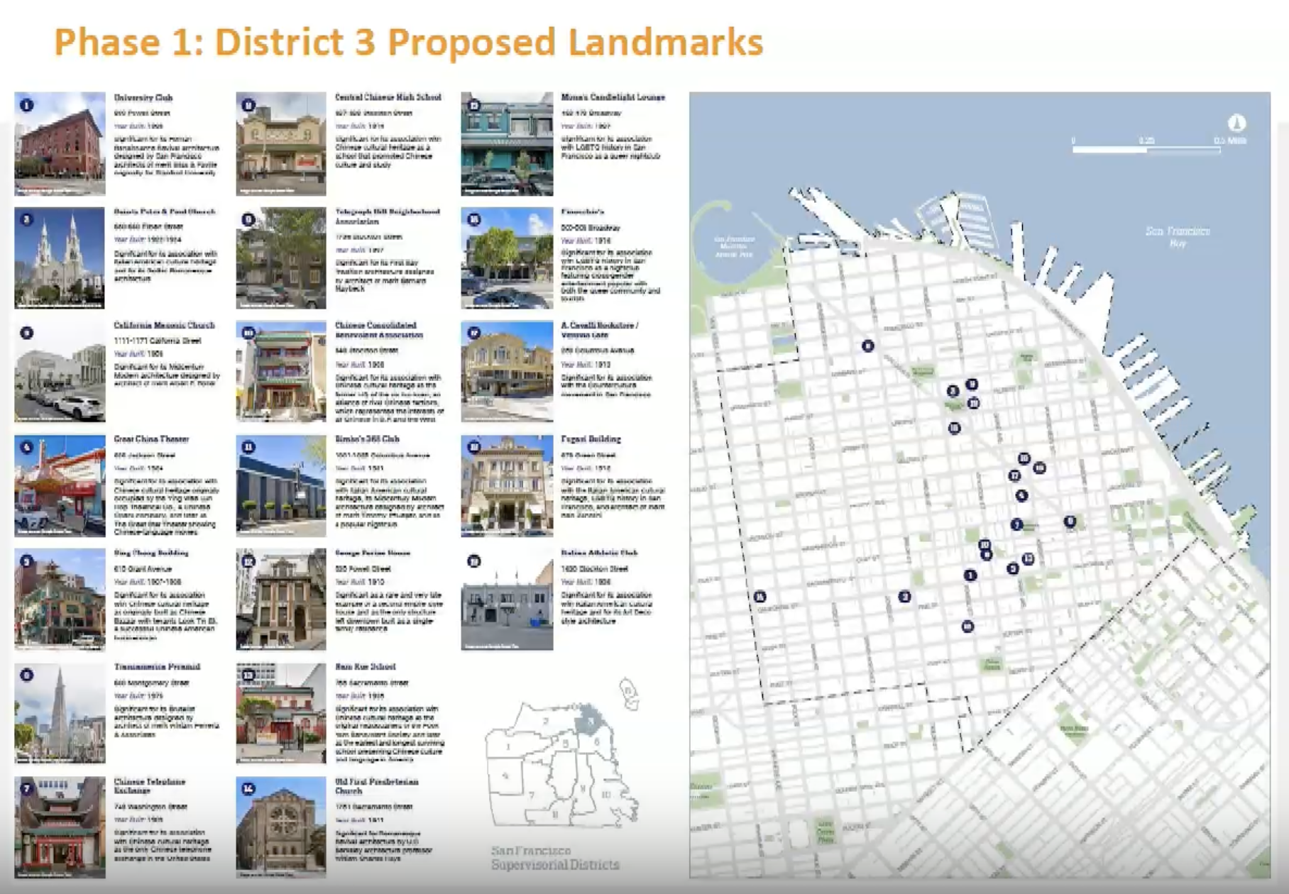 Thirteen iconic District 3 buildings including the Transamerica Pyramid and Vesuvio Cafe move toward landmark status under the Family Zoning Plan.