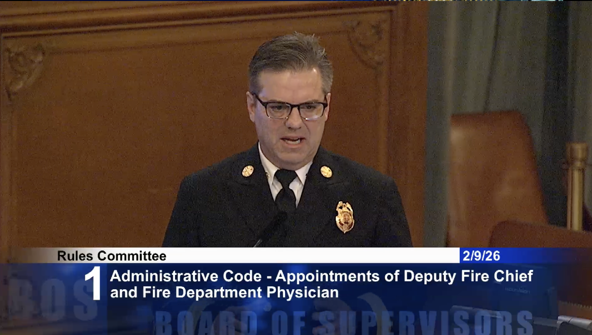 Fire Chief Dean Crispin presented two proposed changes to the Administrative Code. First, the ordinance broadens the qualifications for the Deputy Chief of EMS and Community Paramedicine position (vacated by retired Deputy Chief Simon Pang) to include battalion chiefs who have served as paramedics in the department, expanding the applicant pool beyond the current restriction to rescue captains and other chiefs in the EMS division. The rationale includes the need for command experience in succession planning and integration of suppression and EMS functions. Second, the ordinance removes the Fire Commission's authority to appoint the department physician, aligning practice with the City Charter which grants that authority to the department head. The Fire Commission will create rules of order for a panel interview process should the position become vacant. Supervisors Mandelman and Sherrill asked probing questions about the history of the three-deputy-chief structure and whether the qualification broadening was driven by immediate recruitment needs (it was). The item passed 3-0 with no public comment.