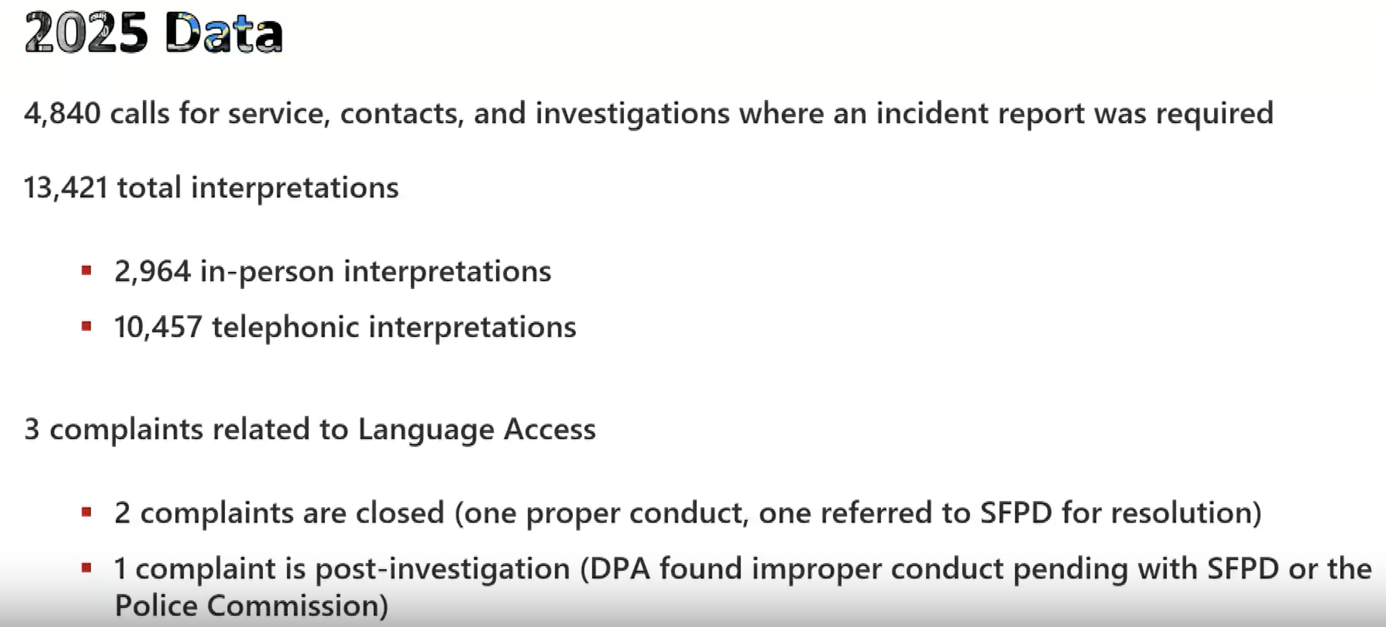 Director Henderson reported only 8 cases over 270 days — a historic low — and 49 sustained cases pending with SFPD, down from triple digits, while an open airport investigation seeks witnesses.